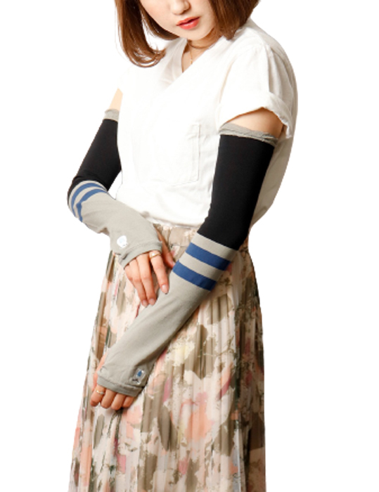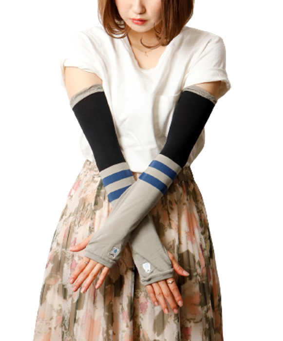 ○接触冷感のさらっとした肌触りの45cm・ひじ上丈で半袖Tシャツなどにも、もたつかずじゃまになりません。
