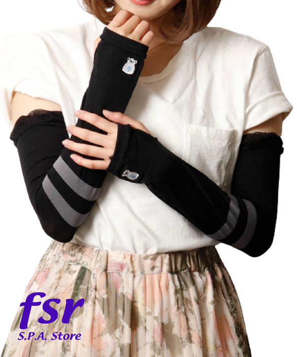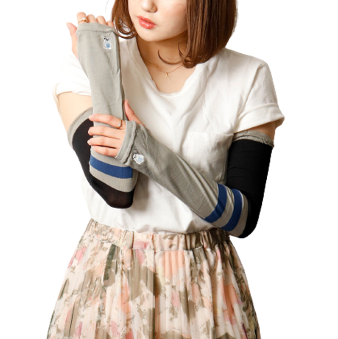 アームカバー アームスリーブ 45cmひじ上丈 紫外線カット UV効果 日焼け防止 冷房対策 腕カバー 手袋 内側メッシュ かわいいしろくまとクリームソーダの刺繍 ヘザーグレー ACV-2297-HG