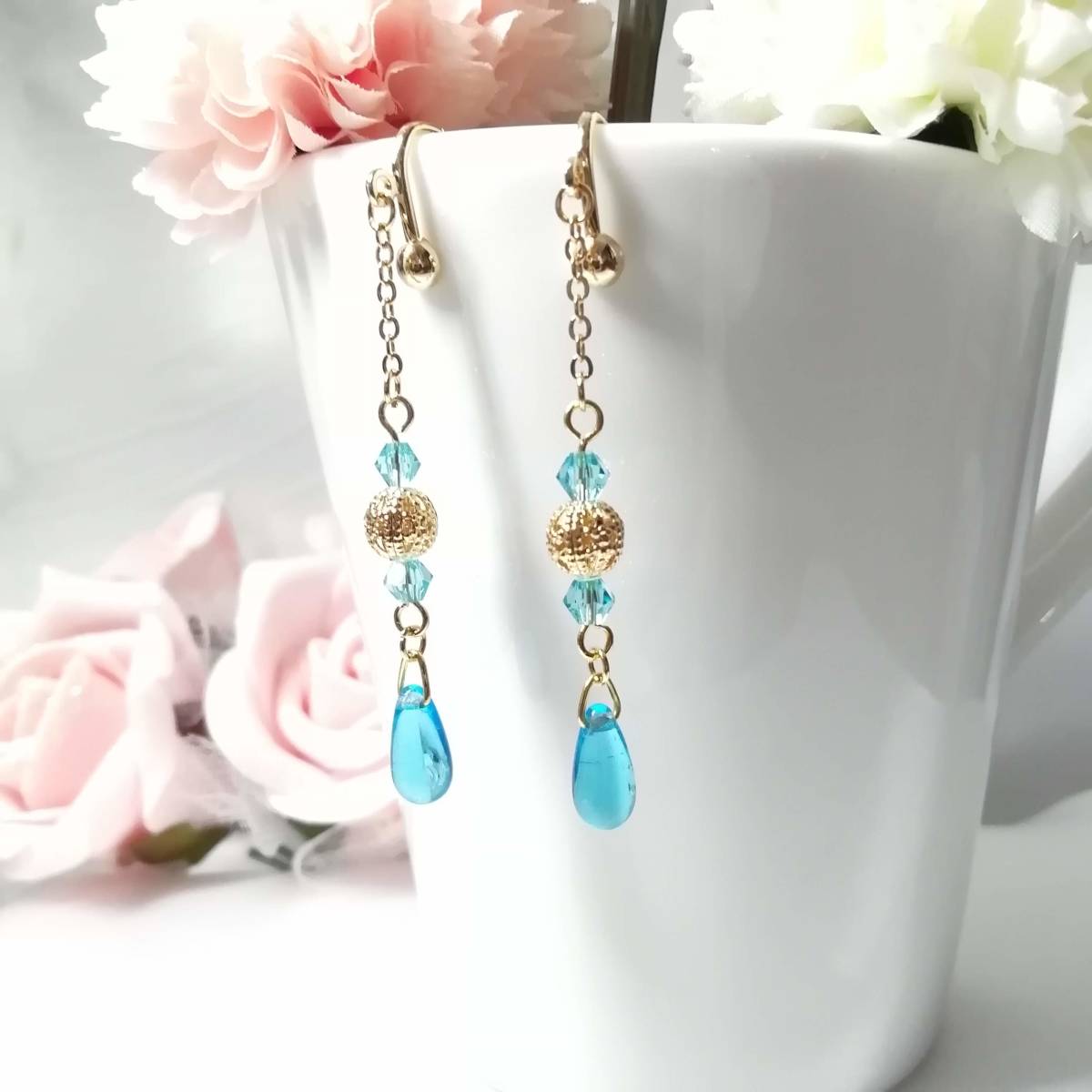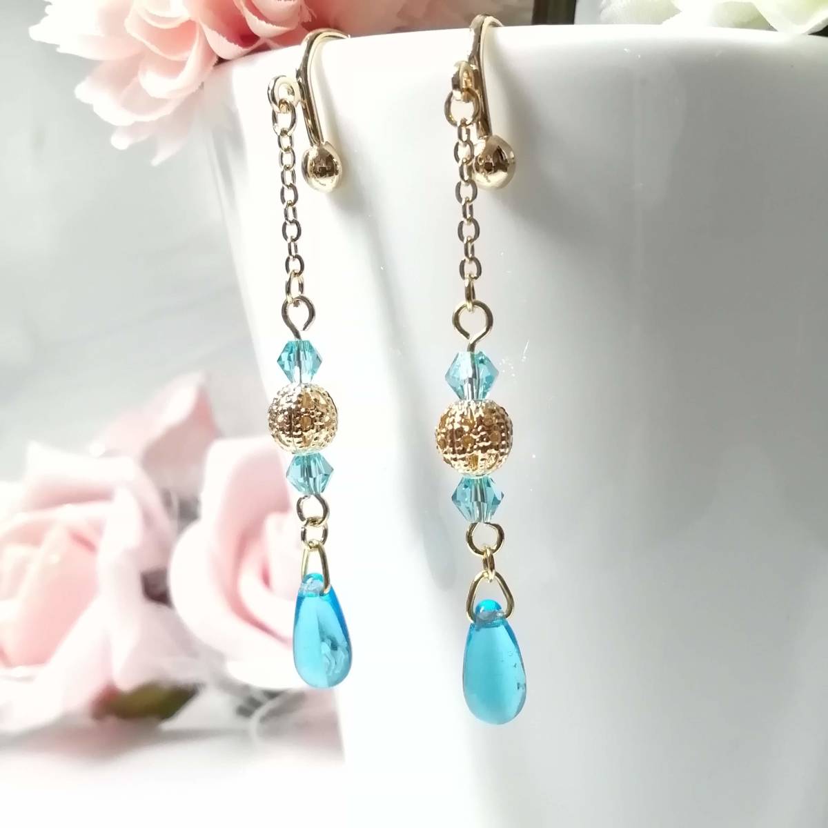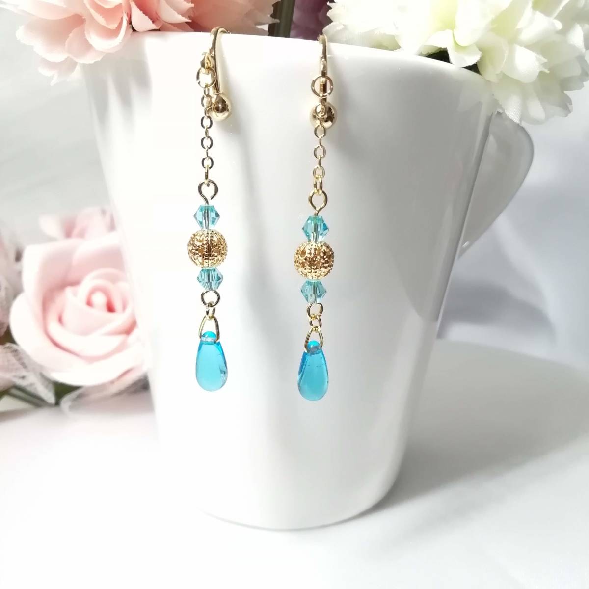 | ★商品内容★ アクアマリンドロップのハンドメイドイヤリング★スワロフスキー/上品/ゴールド/チェコ/雫/ドロップ/爽やか/水色/アクアマリン/ブルー アクアマリンブルーとゴールパーツの組み合わせが 上品でゴージャスな女性らしさを印象付けるイヤリングです☆・**.・**☆・**・。*・。 シンプルなデザイで、普段使いはもちろん、 お洒落のワンポイントにも最適です。*・。☆・*.・。**.・。**。・. 【素材】 チェコビーズドロップアクアマリン10mmx5mm スワロフスキー5328ブルージルコン4mm k16GP透かしメタルビーズゴールド6mm 小粒チェーンゴールド カンより垂れ下がる長さは、約4.8㎝です。 Eー822 ★注意事項★ ***~ご購入前に必ずお読み下さい~*** *・*・*落札後について*・*・* *落札後4日以内にお手続き、ご連絡が無い場合は落札者都合で削除致します。 *発送日指定・ご入金の予定が1週間以上先をお考えの方は、入札の前に質問よりご連絡くださいませ。 予めご了承の上、ノークレーム・ノーリターンでお願い致します。 *・*・*商品について*・*・* *一点一点心を込めて作っておりますが、手作りなため多少の歪み等あるかもしれません。 手作りの味わいと、世界で一つだけの作品とお考えいただければ幸いです。 *デリケートな商品ですので、強く引っ張ったりすると破損する事もあります。 お取り扱いにはご注意ください。 *ご覧のPC、スマホによっては画像と実物の色味が多少異なる場合があります。 *基本イヤリング金具は跳ね上げネジ付き金具にて作成しております。 **ご希望によりピアスへの変更も承っております。 【フックピアス…無料/キャッチピアス…別途追加料金120円】 *その他…樹脂ノンホールピアス(無料)・カン付き樹脂ノンホールピアス(別途追加料金20円)にも変更をお受け致します。 ~ご注文の際にメッセージ欄よりお申し付け下さい~ 尚、金具変更のご希望が無い場合は、掲載された写真の金具にてお送り致します。 *金属アレルギーや、化学物質アレルギーなどへの対応はしておりませんので、ご心配な方はご遠慮下さいますようお願い致します。 *永くご愛用頂くために、ご使用後は柔らかい布等で軽く拭いてください。 *・*・*プレゼント用梱包のご要望もお受けいたします*・*・* *その際は、梱包費用が別途で必要となりますのでご注意ください。 また、ご希望の梱包タイプによって、発送方法が変わりますので、送料が別途必要となります。 プレゼント用梱包タイプ 【袋→100円】 発送方法【クリックポスト(送料無料)】 プレゼント用梱包タイプ 【箱→200円】 発送方法【レターパックプラス(別途520円)】 袋タイプは【合計100円の追加料金】、箱タイプは【合計720円の追加料金】となります。 ◆ご希望の場合は、必ず商品ページをウォッチリストに登録した上で落札前に質問にてお問合せ下さい。◆ ◆ご希望を承り次第、一度出品を取り消し、プレゼント用梱包費用、送料などを追加した金額へ変更し、再出品致します。◆ *再出品後に再度検索して頂く手間が省けますため、プレゼント梱包をご希望の場合は必ずウォッチリストへのご登録をお願い致します。 金額変更後の再出品から3日以内に落札されなかった場合、誠に勝手ながら購入する意思がないとみなしまして、元の金額へ修正致します。 また、修正後、再度プレゼント用梱包のご希望のお問い合わせを頂きましても、お断りをさせていただきますのでご注意ください。 ご不明な点がございましたら、落札前に質問よりお願い致します。 ***ご質問について*** *ご購入前にお願い致します。 日中は仕事をしておりますので、ご返事が直ぐに出来ない場合がございます。 出来る限り早い対応を心がけますが、ご了承ください。 また、発送までには、お振込み確認後、翌日の発送を心がけておりますが、仕事の都合により2~3日程かかる場合がございます。(その際にはナビにてご連絡いたします) お急ぎの場合は、極力対応いたしますが、場合によっては対応致しかねる事もあります。ご了承下さいませ。 | |||
