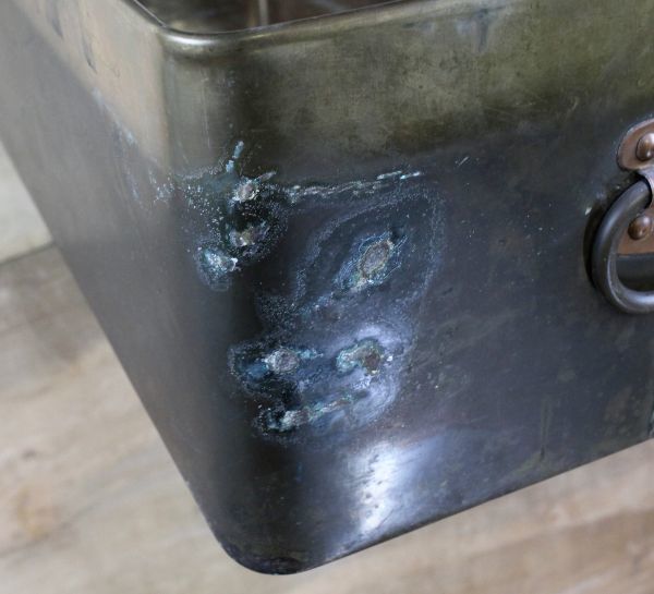 C-515IZ 銅製 ふた付き 大型 方形缶 収納箱 37×84×21センチ レトロ 乾物箱 保管箱 道具箱 工具箱 Copper Storage box Tool box 蔵出 古玩