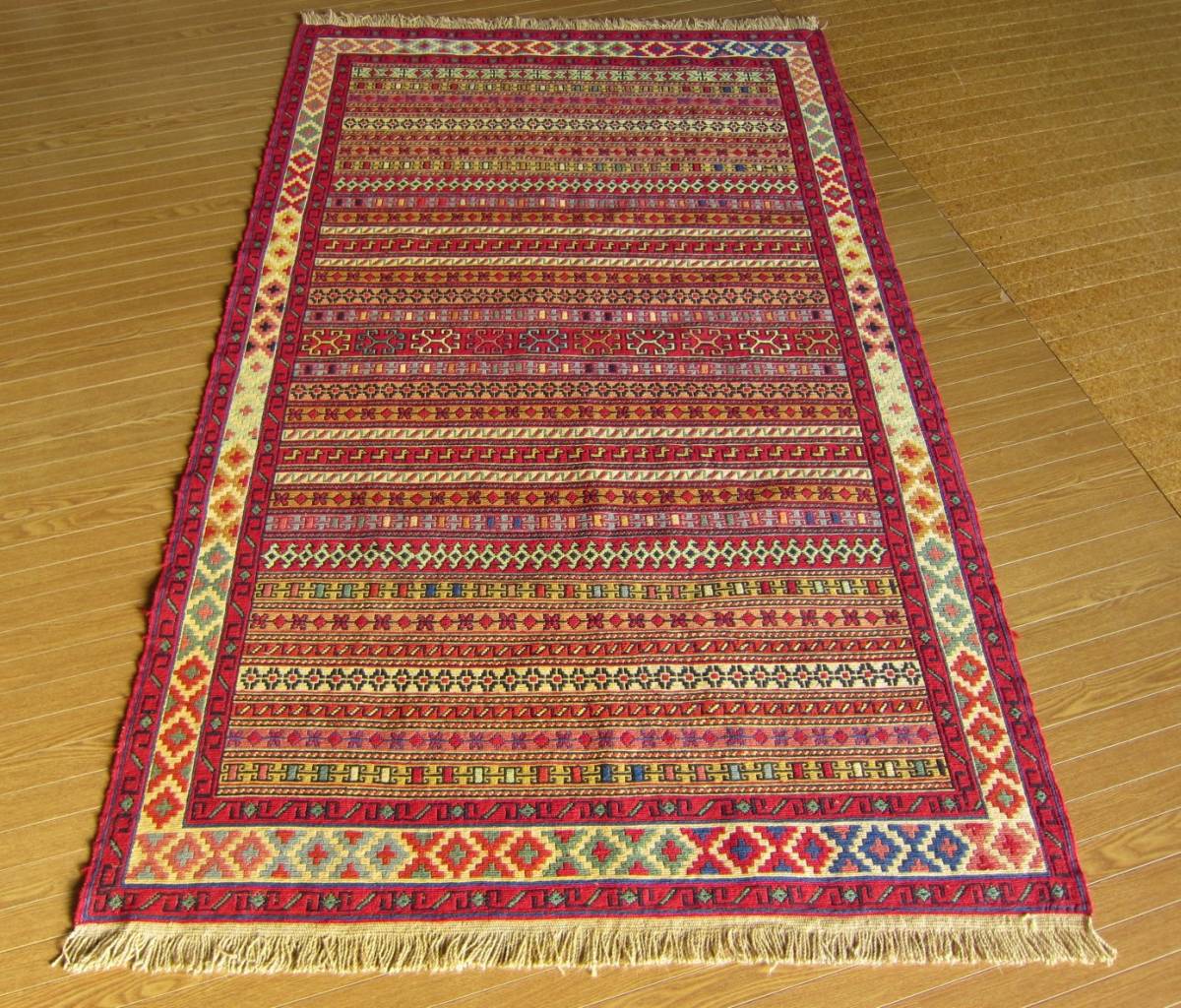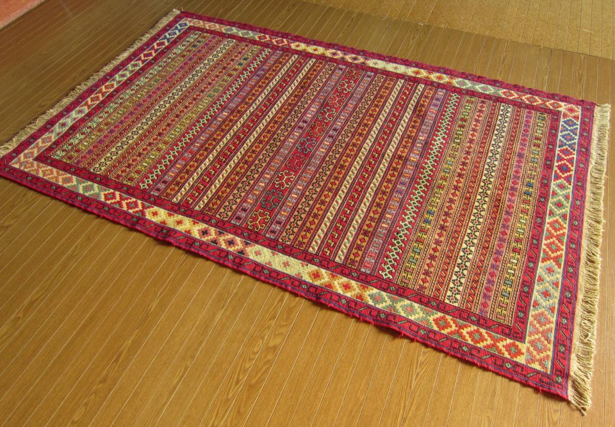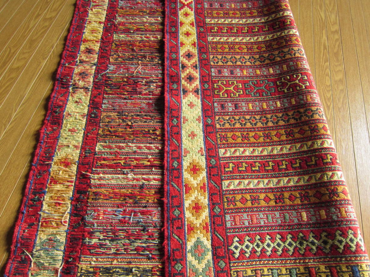 商品説明 | ★素材 : ウール・手織り・スマック織り ※スマック織りとは、イランのキリムの織り方の技法です。 土台の縦糸と横糸の上にもう一本横糸を絡めるように 巻き込んで織っていく高度なテクニックで、 刺繍のように細かな文様を描けることができます。 スマック織りは裏面に模様の糸を渡してあるので 片面使いのキリムになります。 ★サイズ : 約 200×126 cm (房を含まない長さです) ★産地 : イラン・アゼルバイジャン ★状態 : 新品 kxpgs342+ZIBACARPET絨毯 kxpgs342+ZIBACARPET取扱いペルシャ絨毯 FARSHEZIBA_KILIMキリム |
