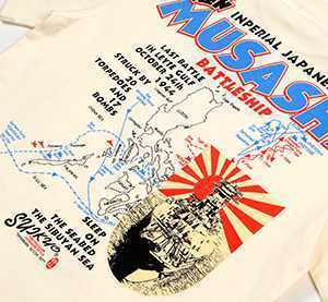近年発見された戦艦武蔵。最後の出撃をなったセドナ海戦。その航海図と共にデザインしています。