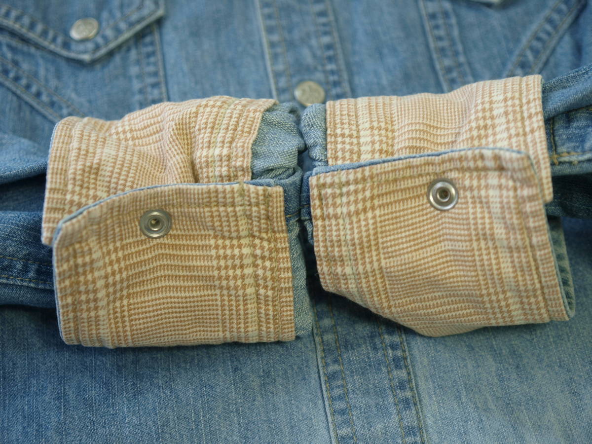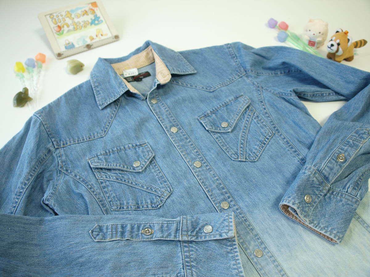 商品の補足説明(主観的な内容も含む) すれやすい部分は、ほどよく色落ちしていますが、擦り切れなどはなく、生地のコンディションも問題ありません。 デニムシャツとしては、若干厚めくらいかと思いますが、肩の辺りは生地が2枚重なっているので厚めです。 サラッとした肌触りで、なかなか良いかんじのデニム生地だと思います。(個人的な主観ですが・・・) |