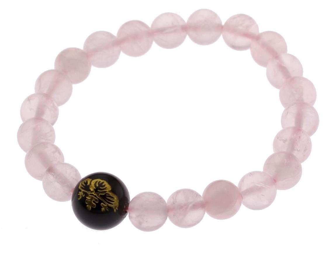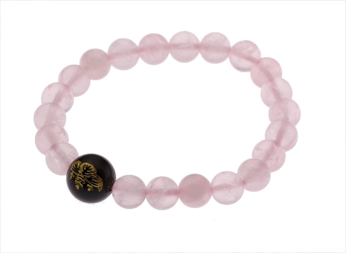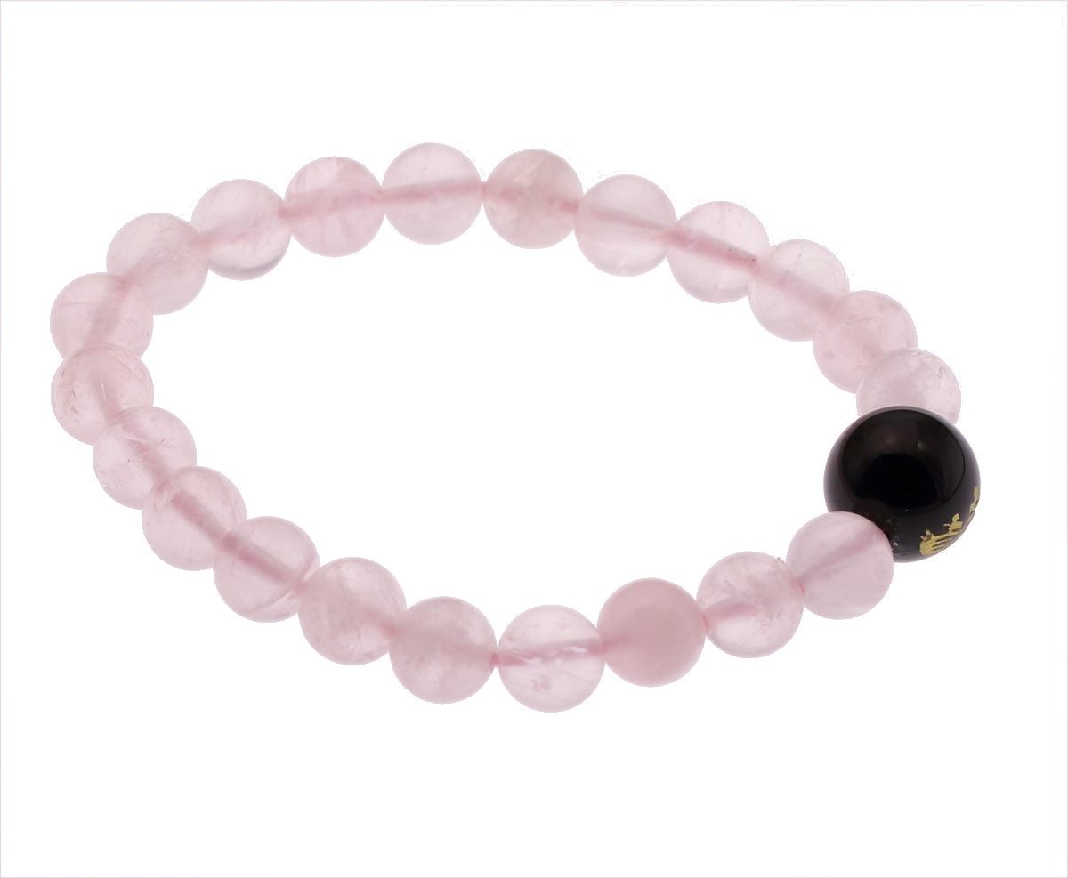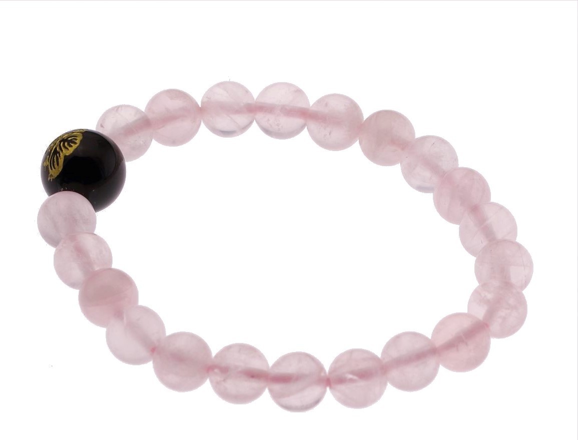 「五三桐紋」をオニキスに、天然ローズクォーツ(紅水晶)があなたの手首を彩ります。
