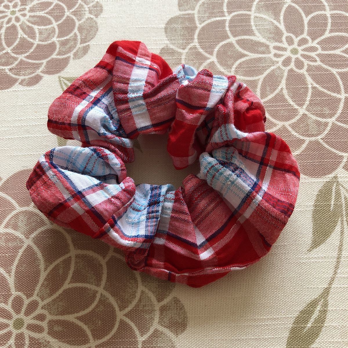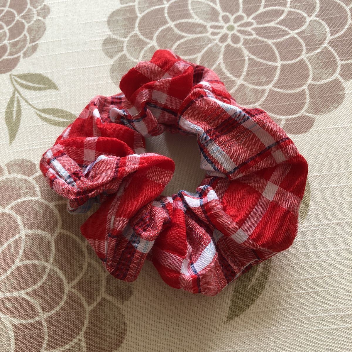 シュシュ チェック 赤