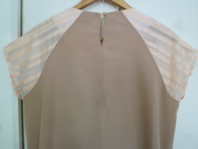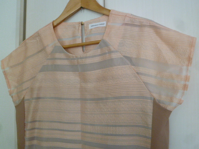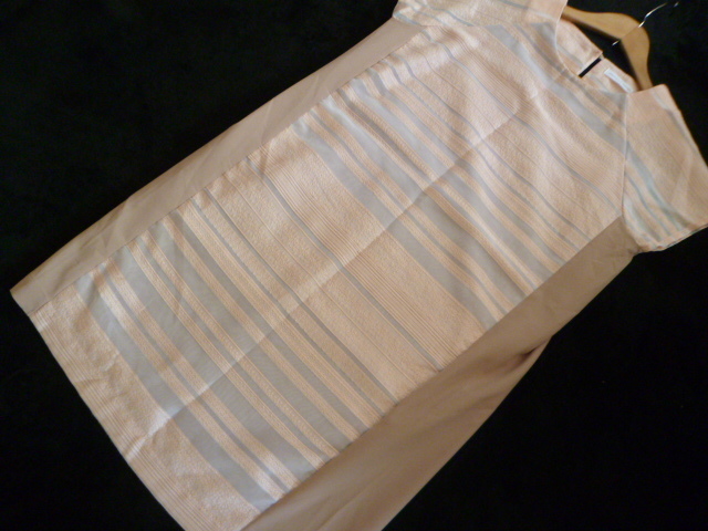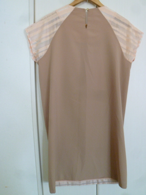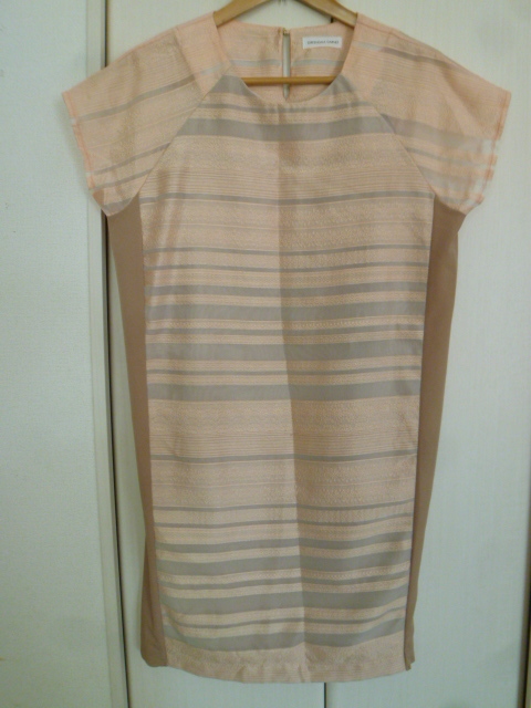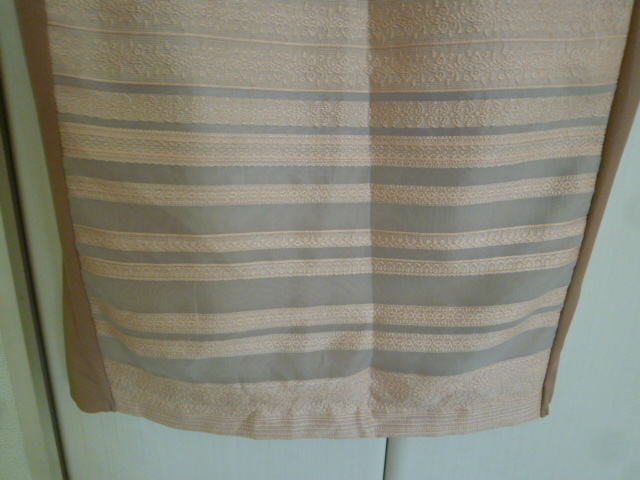 GREENDALE GARNET/グリーンデイルガーネット△サーモンピンク系レース柄透けボーダー×ベージュバイカラーワンピースF/ドリーム膝丈△BO62