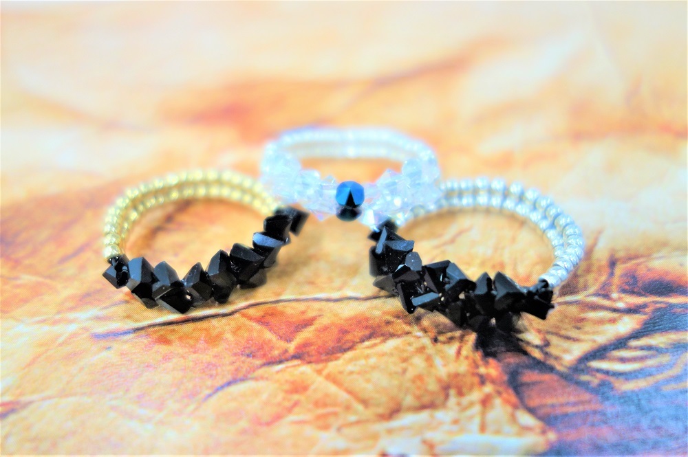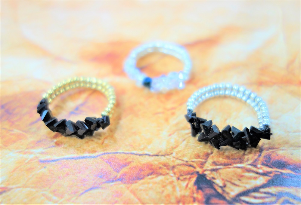 【A級ガラス製不規則カットビーズ使用、指輪3点一括販売】送料無料/ハンドメイドアクセサリー