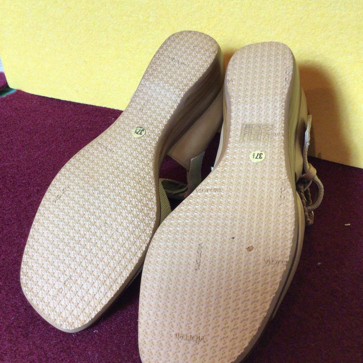 未使用に近いサンダルでとても美品かと思います。異素材を使ったデザインがとても素敵です。安定感のあるソールなので疲れにくいかと思います。
