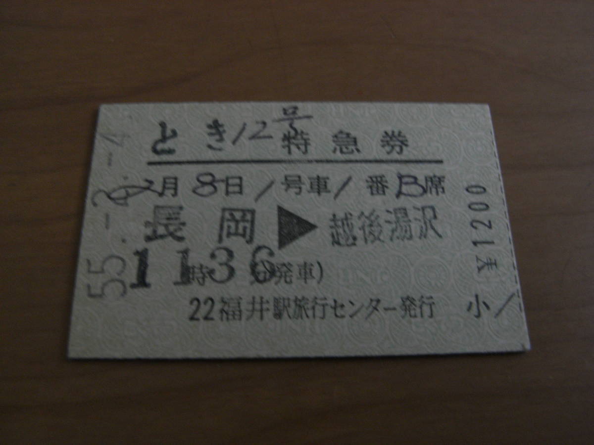 とき12号 特急券 長岡→越後湯沢 昭和55年2月4日発行 福井駅旅行センター発行