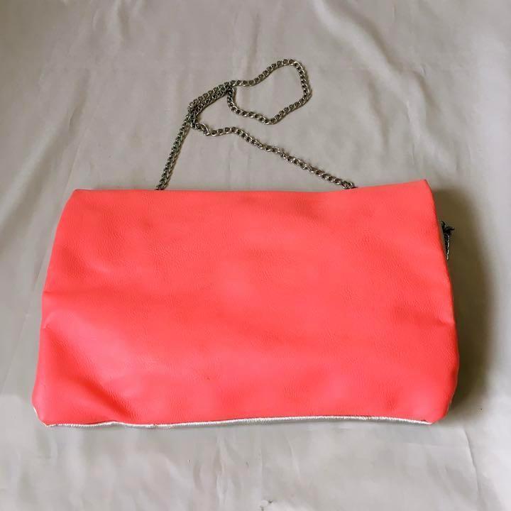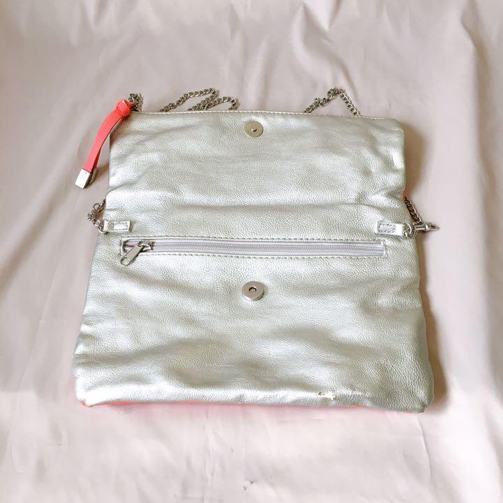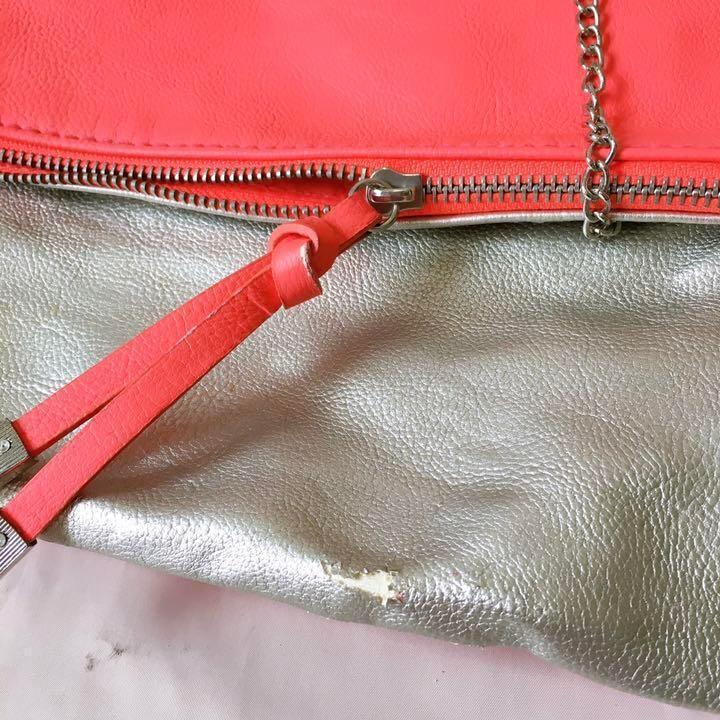 H&Mのシルバーとピンクオレンジのツートーン ショルダーバッグです。