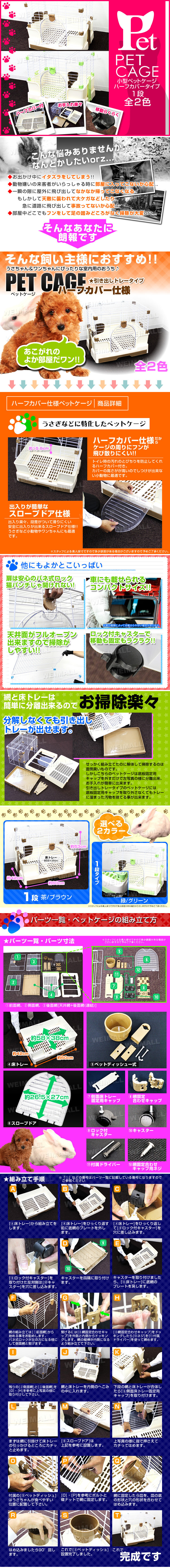 ★★当店人気商品!!★★ 小型犬、ネコちゃん、うさぎにおすすめ! 使いやすさ、掃除のしやすさを追求したペットケージです。 引き出しトレイが付いているので付属のプラスチックすのこを敷けば、小型犬・猫を外に出さなくても簡単な掃除ができます。 上部を取ればペットサークルとしても使えます。 スロープドア仕様だから出入りが簡単! 飛び散りを防ぐ高い壁! 壁付きトレーで、尿や毛の飛び散りを防ぎます。 組み立て簡単! キャスター付きで移動や掃除もラクラク♪ |