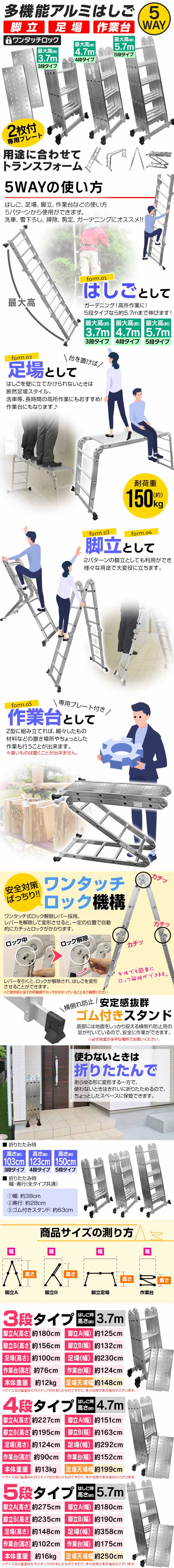 | 多機能プレート付 5WAYアルミ梯子 (はしご⇔脚立⇔足場) |