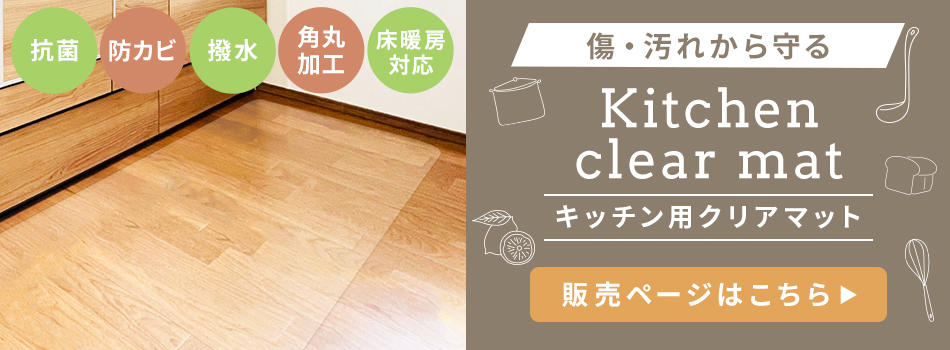 でも、汚れたマットをこまめに洗うのはめんどくさい…。 マットが滑りやすくて掃除機をかけるときにぐちゃっと丸まってしまう…。 そんなお悩みには、お洗濯不要!汚れやキズから床を守る、クリアキッチンマットがオススメです。 ■汚れ・水シミから床を守る 撥水性のあるPVC素材を使用してるので、汚れやシミに強く、 食べ物や飲み物をこぼしてもサッと拭くだけ!お手入れも簡単です。 抗菌・防カビ加工で、よりクリーンに。 ■傷や衝撃をガード 透明だから、インテリアの邪魔をしない! フローリングに敷くだけで、木目はそのままに、 落下物による凹みやテーブルや椅子の引きずりによる床へのダメージを防ぎます。 ■サラサラの感触でベタつかない エンボス加工を施しているので、べたつきを感じさせないサラサラの手触りです。 マットな質感で、フロアになじみます。 ■ピタッとズレない快適設計 裏面が床にピタッと密着してズレを防止。 角丸設計でめくれにくく、ロボット掃除機も問題なく使用できます。 ■床暖房対応の耐熱仕様 100℃の耐熱加工を施しているので、床暖房の上での使用もできます。 ■カット自由自在! お好みのサイズにカットできるので、ダイニングテーブルやキッチンフロアマットに、 学習机 デスクマット、子供の遊び場やペットの床保護マットなど、自由自在にアレンジできます。 【商品仕様】 カラー:クリア サイズ(約)45cm×240cm(厚さ1.5mm) 材質:軟質PVC 使用温度(約)-30℃~100℃ 【注意事項】 ・伸縮性のある素材のため、サイズに多少の誤差が生じる場合があります。 ・お手入れは薄めた中性洗剤を湿らした布につけ、固く絞って拭いた後、水分が残らないように乾いた布で乾拭きしてください。 ・日の当たる所で使用しないでください。日焼けで硬化する場合があります。 ・商品は、モニターによって色合いが異なって見える場合があります。 ・仕様・デザインは改良のため予告なく変更することがあります。 |