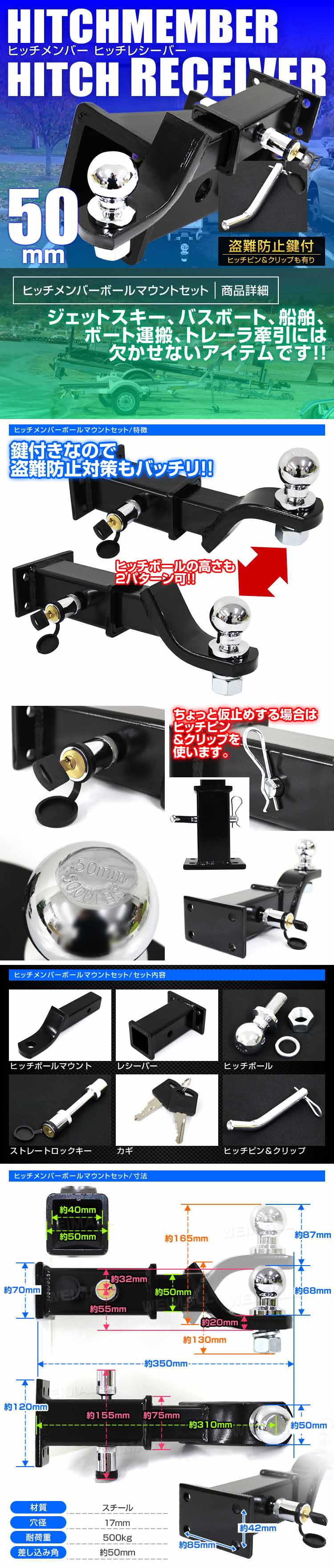 | ヒッチメンバーフルセット ヒッチボールSET ヒッチボールマウント 盗難防止鍵付 |