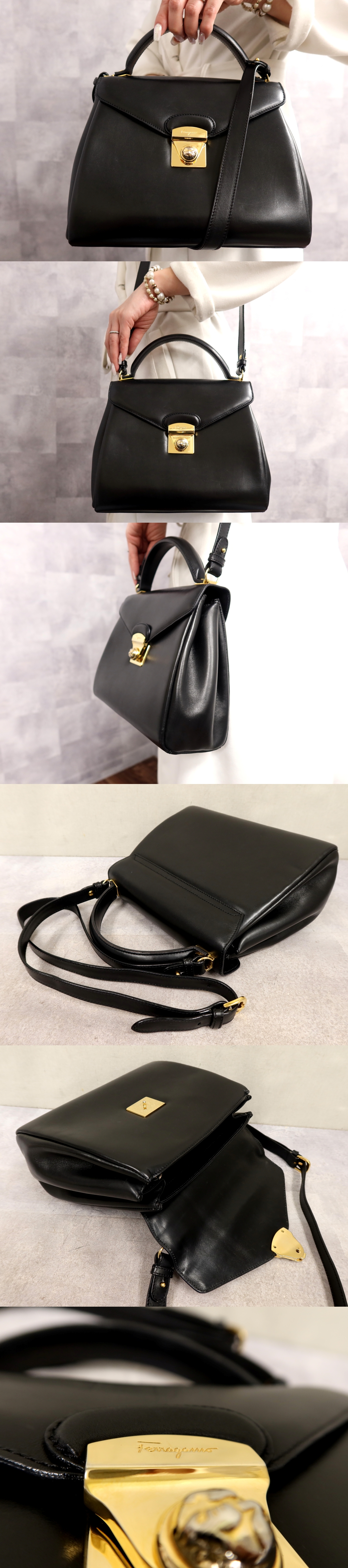 ●超美品●Salvatore Ferragamo フェラガモ●フラップ●カーフ レザー 本革●2way ハンド バッグ●黒●ゴールド金具●収納 かばん●Js65858
