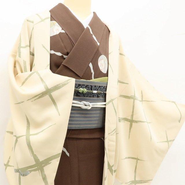 まるで強弱をつけて筆を走らせ、味を演出する擦れ具合で眩しそうな表情をつくり、よく見ればちょこっと洒落味をつけて斜めに広がる格子は、ぎゅっと美を編み、かちっと美をキープ、柄と呼応しながら華を添える羽織紐と共に和姿を引きてます♪