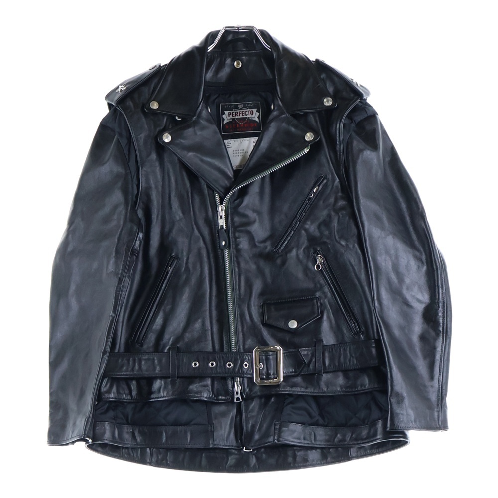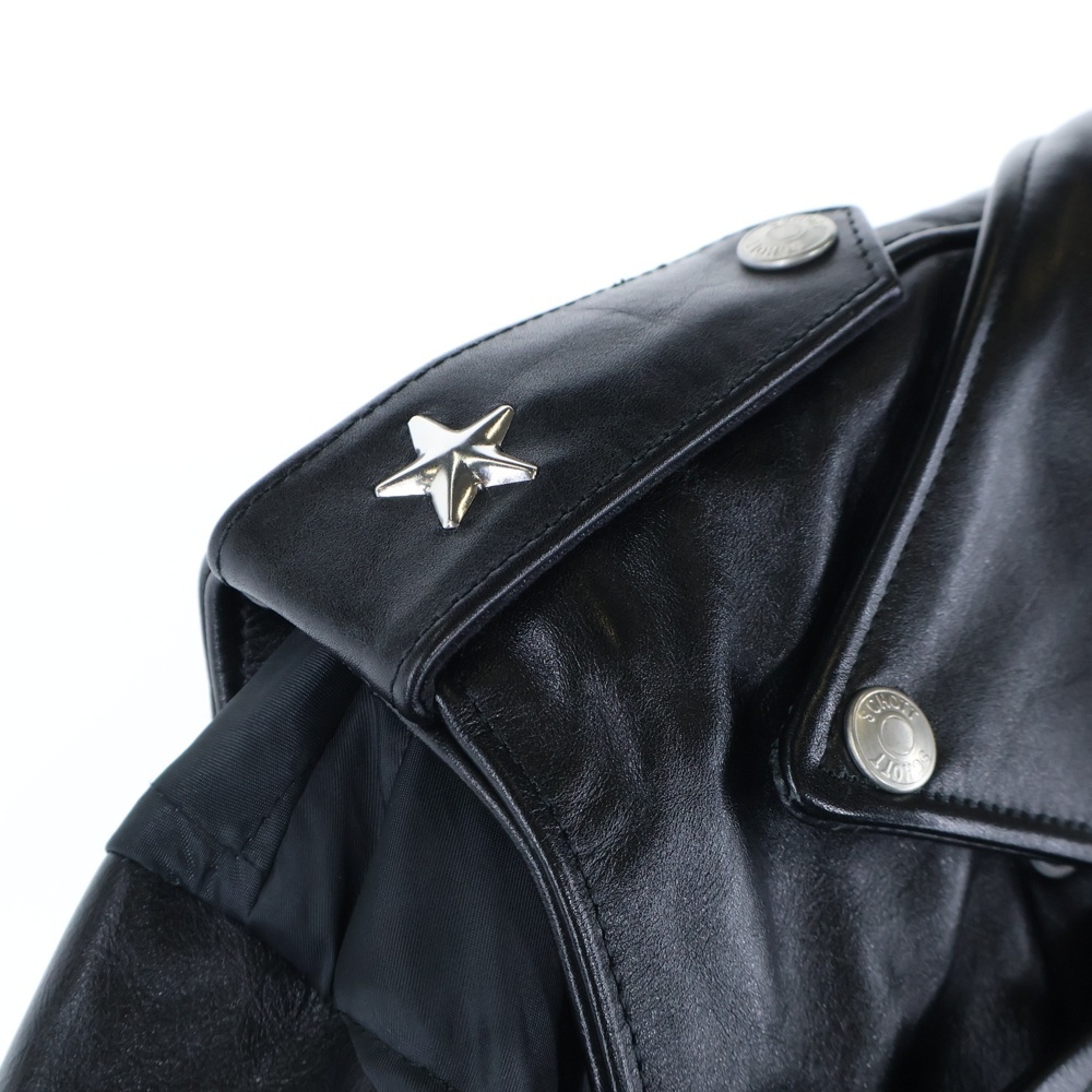 品名22AW ×Schott Leather Blouson ショット スタッズ装飾 レイヤード ライダースジャケット 裏地キルティング ブラック 22-02875M