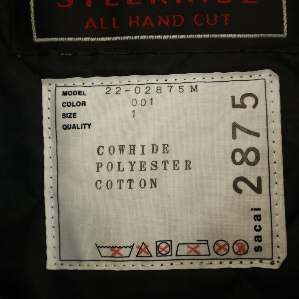 サカイ 22AW ×Schott Leather Blouson ショット スタッズ装飾 レイヤード ライダースジャケット 裏地キルティング ブラック 22-02875M