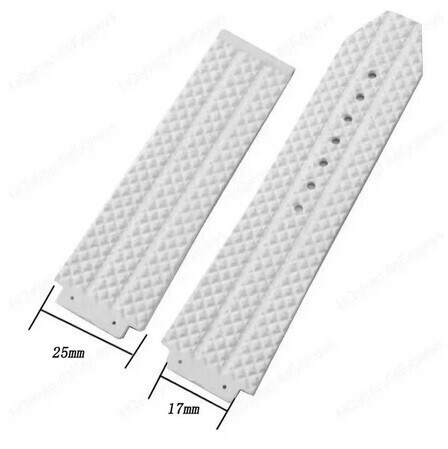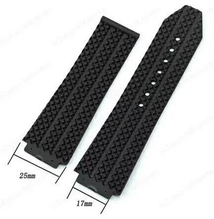 Hublot ウブロ ビッグバン 44mm ケース用 25x17mm 交換 防水 ラバー 時計 バンド 腕時計 ベルト H型ドライバー+ バネ棒3本 ブラックWB010