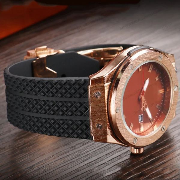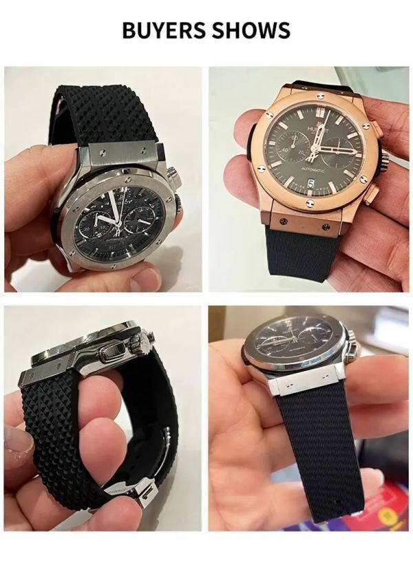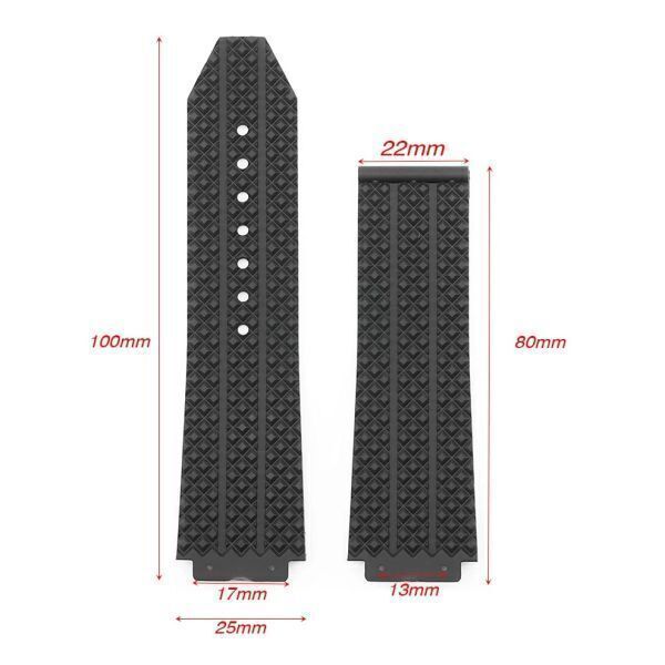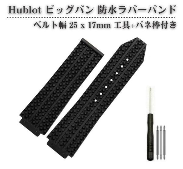 Hublot ウブロ ビッグバン 44mm ケース用 25x17mm 交換 防水 ラバー 時計 バンド 腕時計 ベルト ストラップ 社外品 H型ドライバーセット+ バネ棒3本 ブラック
