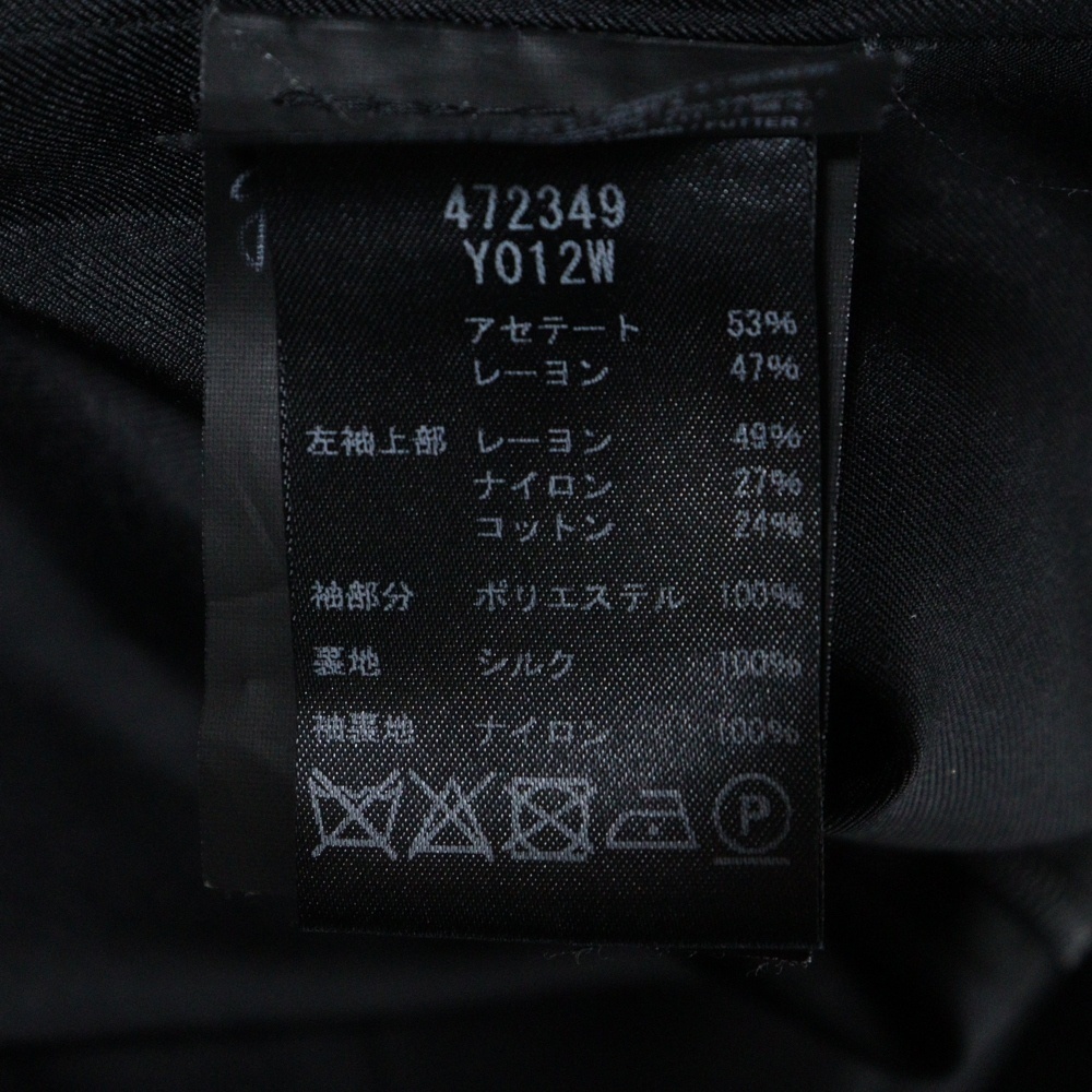 サンローランパリ メッシュ レース 切り替え アセテート クルーネック ギャザースリーブ 長袖 ミディアムワンピース レディース 472349