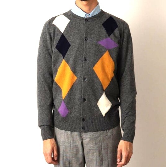 インターシャ編みのアーガイル柄を変形させ、トラッドムードに遊び心を添えたアイテム。