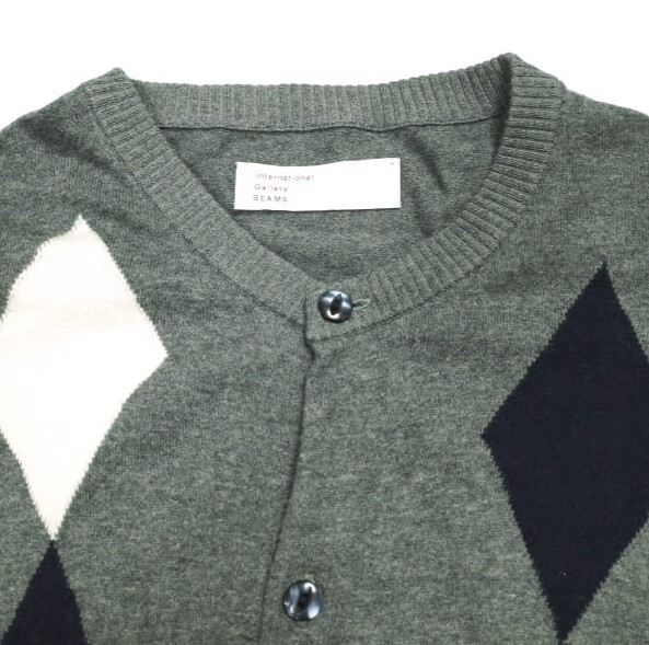 International Gallery BEAMS ビームス 24SS アーガイル コットンニット クルーネックカーディガン 23-15-0105-262 M ARGYLE 定価33,000円
