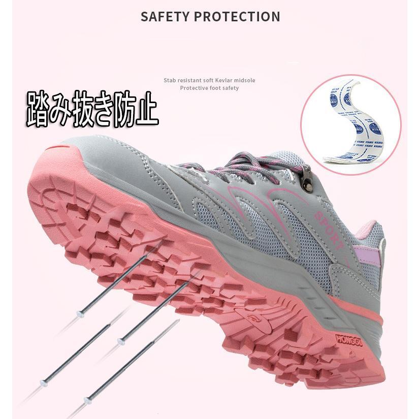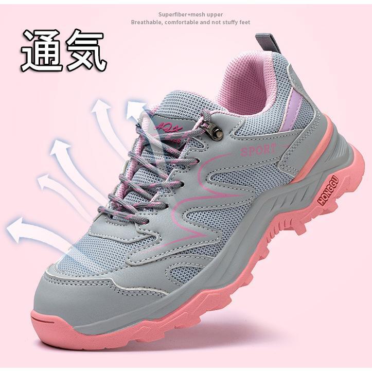 安全靴 レディース 可愛い スニーカー ピンク おしゃれ 大きいサイズ 通気 軽量 つま先保護 作業靴 滑りにくい JQQ0201 24cm