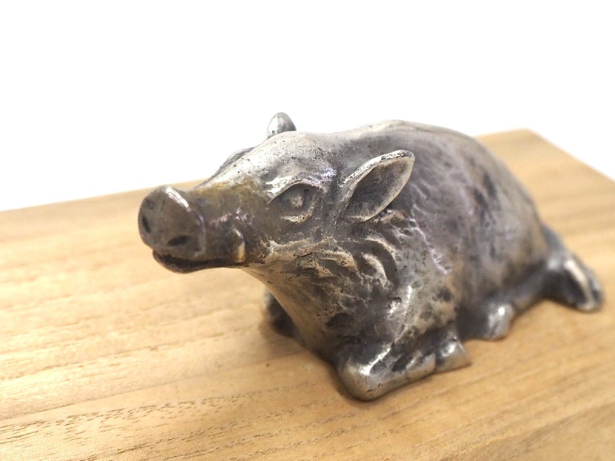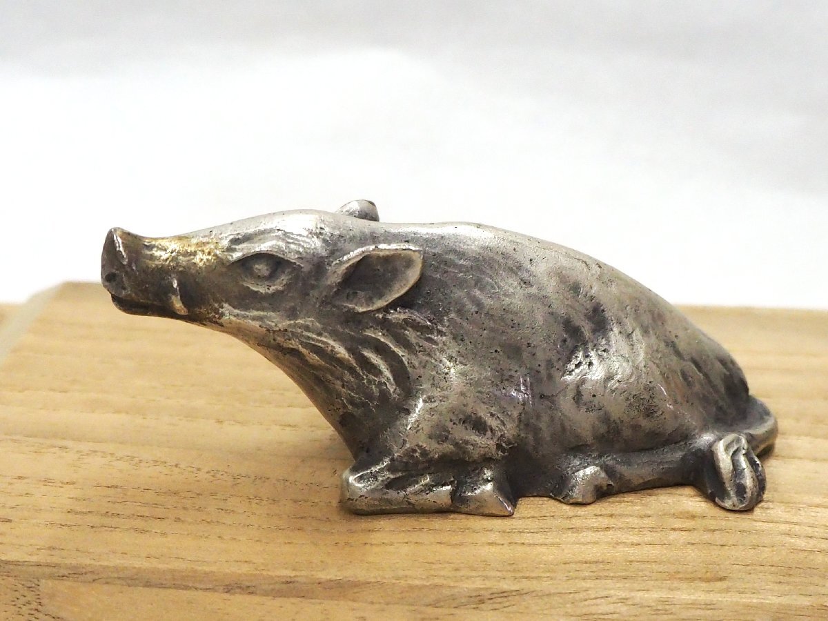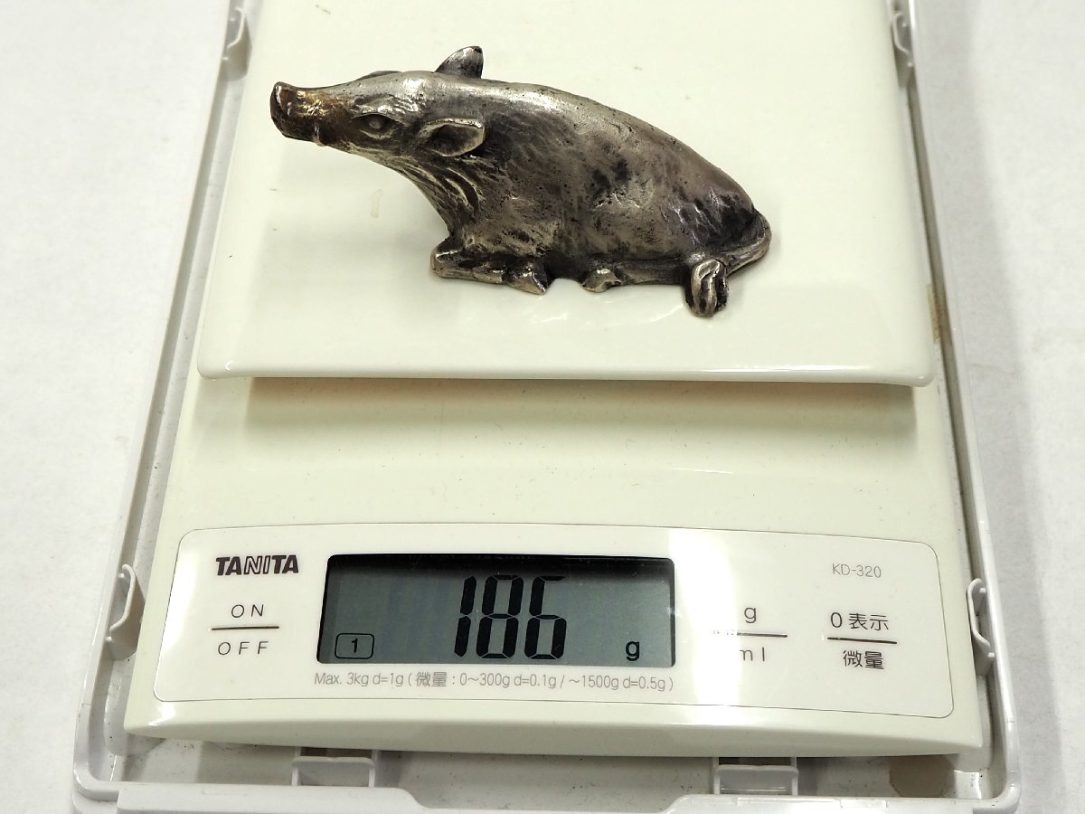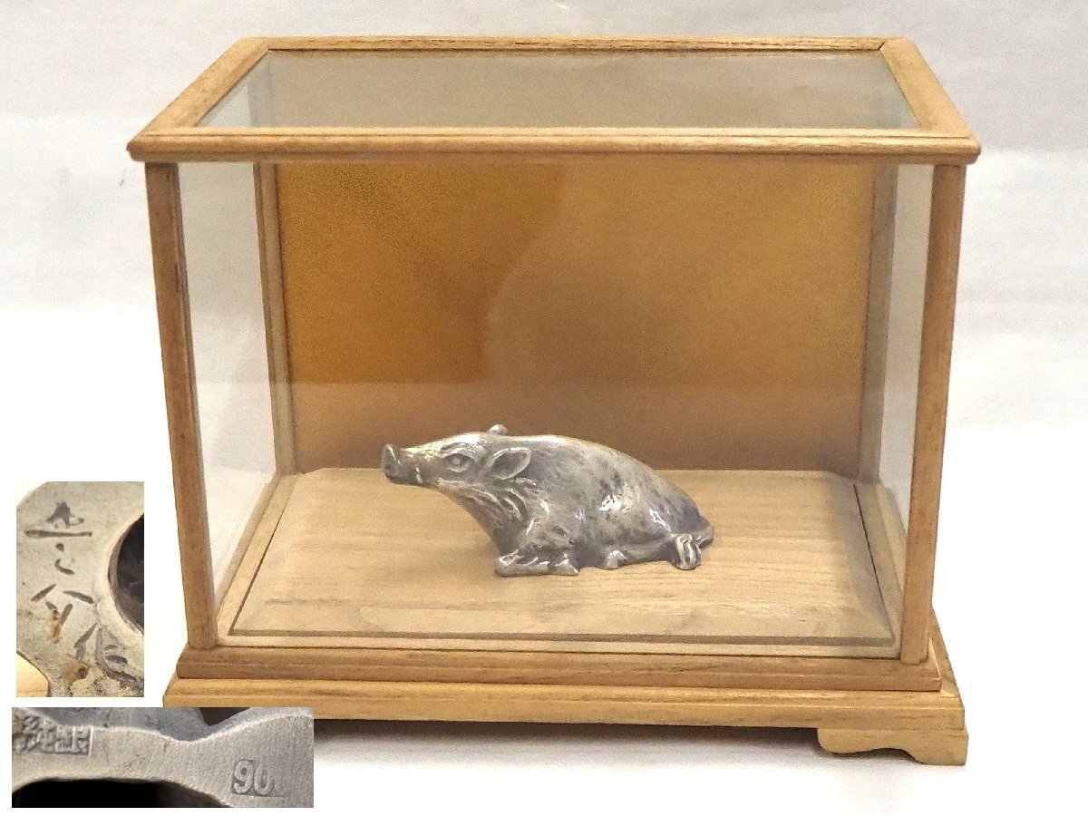 ★☆【 横山豊介作 純銀900 猪 置物 約186g ガラスケース入 】 ☆★