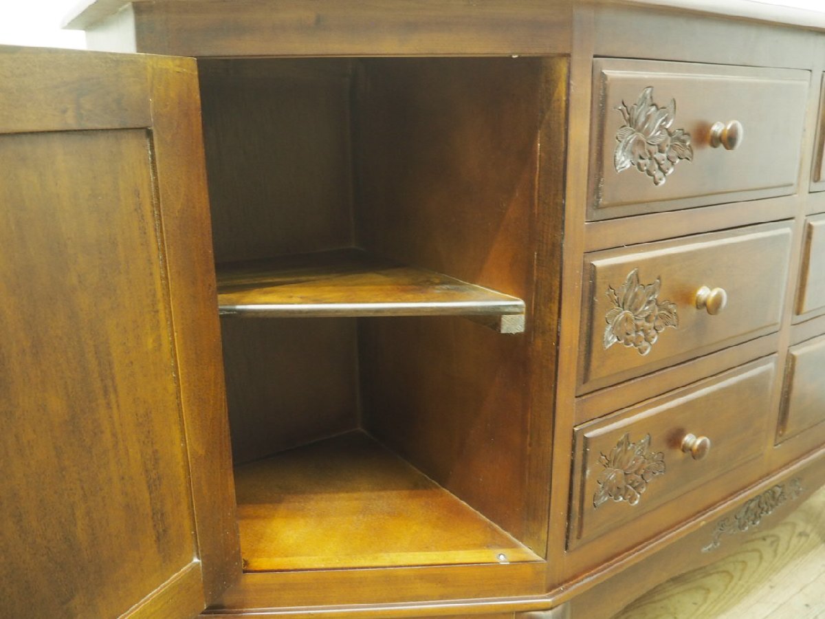 タ荷M0415◆H83,5cm×W139cm◆重厚な味わいの大きい木製サイドキャビネット◆飾り棚 陳列棚 テーブル アンティーク風 ロココ調P(ヤD)松