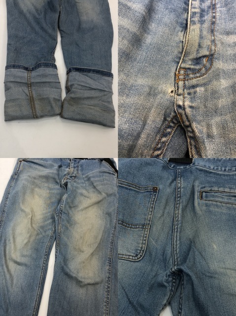 サイズ:S ウエスト:74cm(平置き計測×2) レングス:69.5cm(股下~裾先) 股上:(前)23cm、(別布)7.5cm、(後)32cm(ベルト幅含む) モモ幅:28.5cm(股下の縫い目からまっすぐ横) 裾幅:15cm(裾に沿って) *素人採寸になりますので多少の誤差はご了承ください |