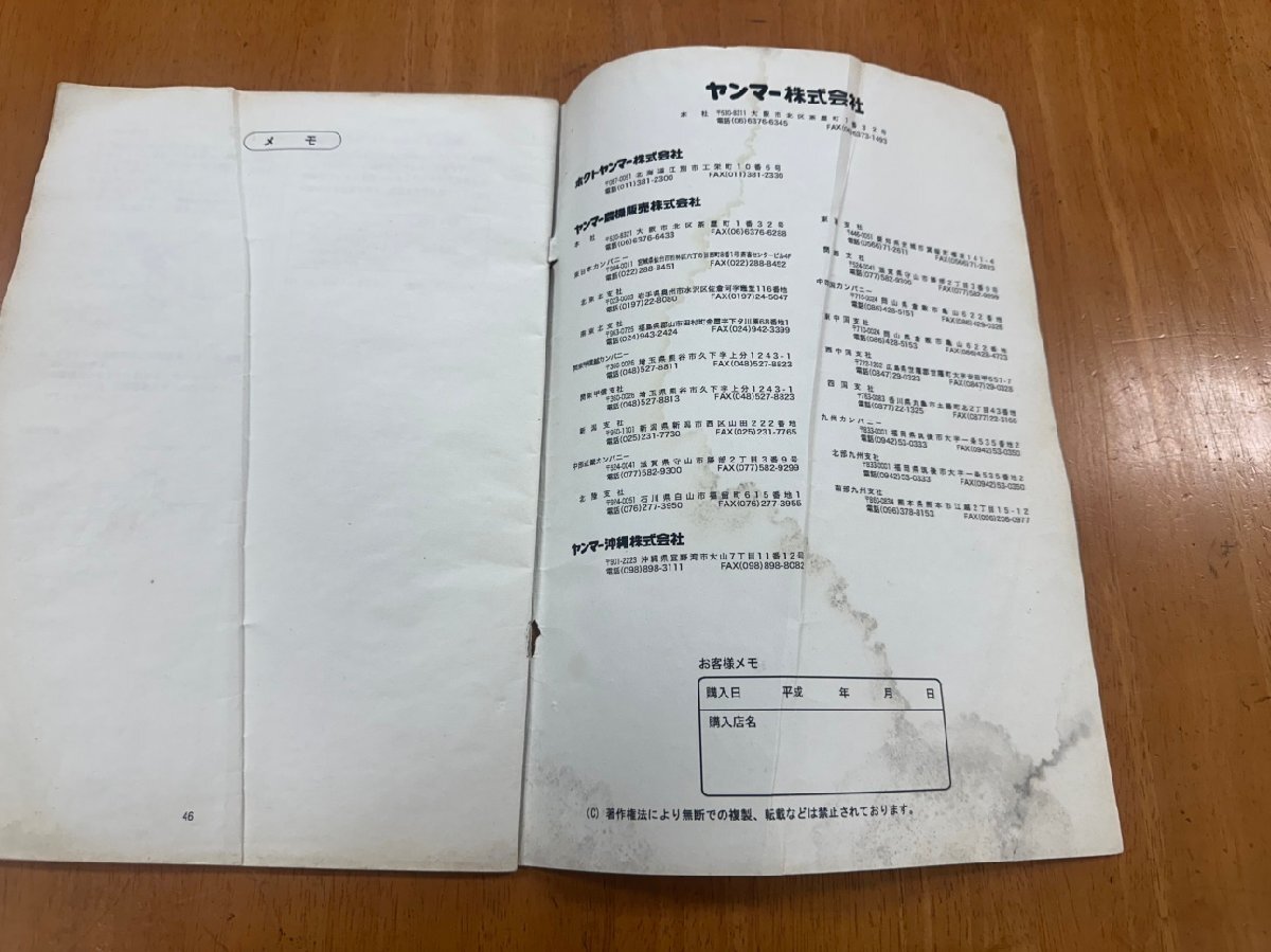 ヤンマー 田植機 田植同時除草剤散布機 取扱説明書 JS-1A 取説 説明書 中古 滋賀県 (F1001) 【送料込み】