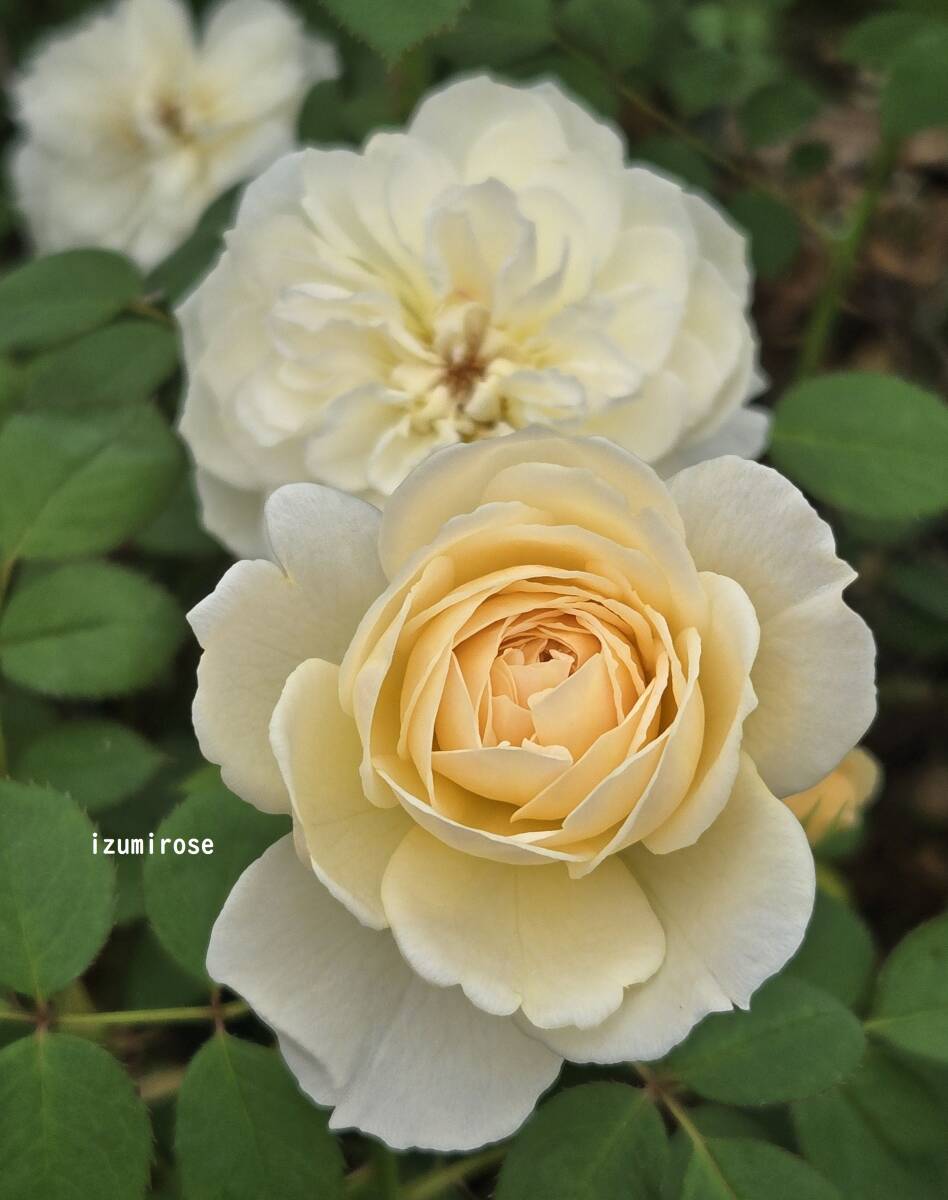 | 商品説明 | 泉農場オリジナル品種。 2018年より販売。 四季咲性、春はクリーミーホワイト、秋はレモンイエロー。花径6~8cmぐらい、夏季は3cmぐらい、ロゼットカップ~八重咲。樹高0.8m以下、中~強香。 春はクリーミーホワイト、暑い時期の開花時はアプリコットピンク、秋はレモンイエローに染まります。 ミルラ系のスパイシーな香り。 濃い深緑の新芽と多めの刺。半横張性。 枝の発生が良く、コンパクトに茂る。 冬に強剪定するとこんもりと茂ります。 7号スリット鉢接ぎ木株。 別途送料掛かります。 泉ローズ | |