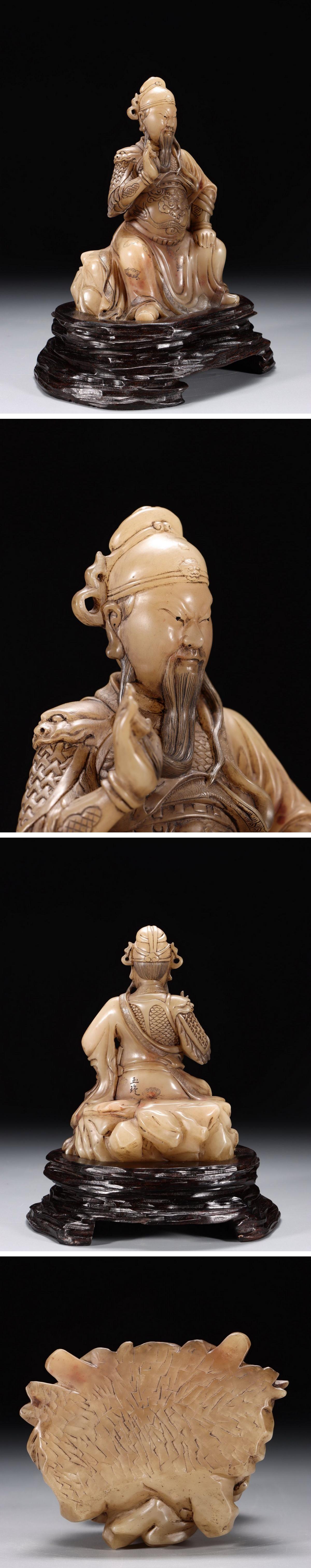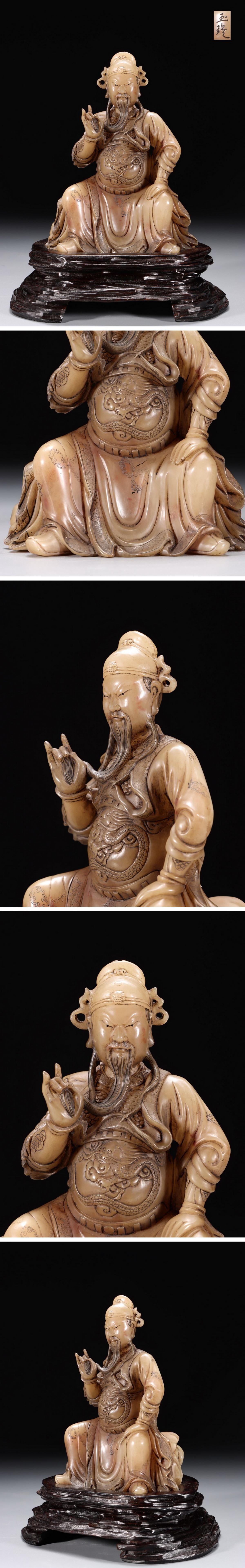 【清】某収集家放出品 清時代 寿山芙蓉石【玉旋】刻 関羽造像 材質保証 当時物保証 中国伝来 当時物保証 古美術 骨董品7L10-ON18