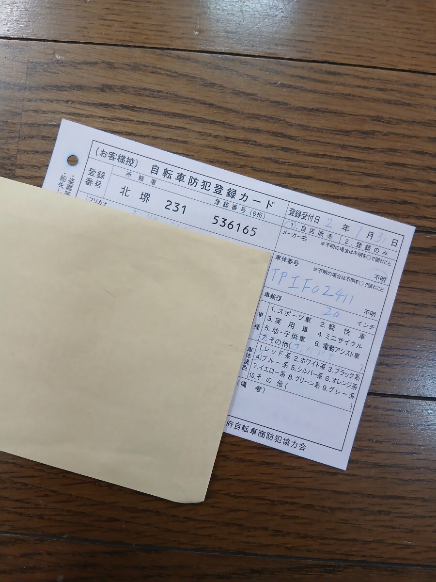 写真10防犯登録していましたが、譲渡を前提に11月半ばに抹消して来ました。