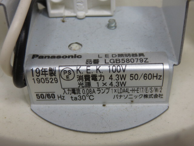 【中古品】 パナソニック 天井直付型 LEDシーリングライト LED電球交換型 白熱電球40形1灯器具相当 LGB58079Z 2019年製 〇YR-14176〇