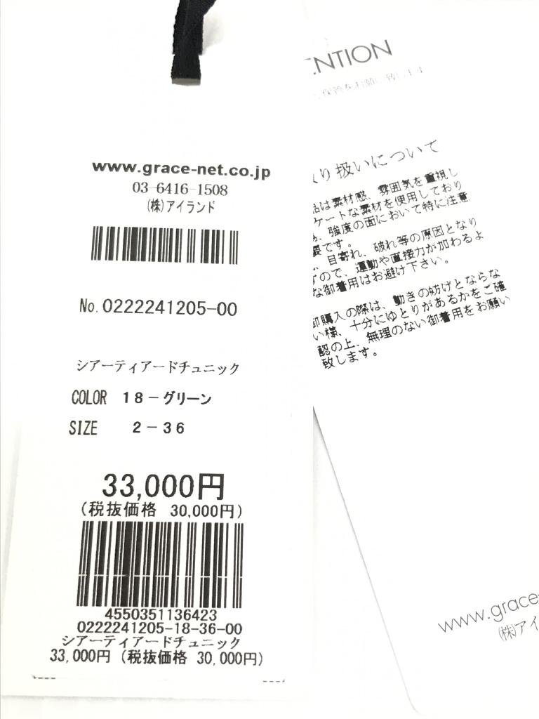【送料込】 新品タグ付!GRACE CLASS グレースクラス チュニック グリーン 緑 シアーティアードチュニック 定価33,000円 size2-36 S/973918