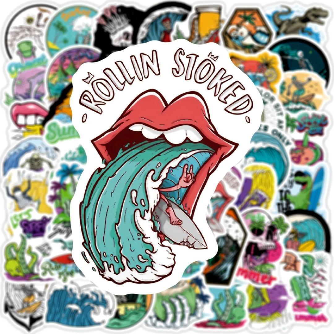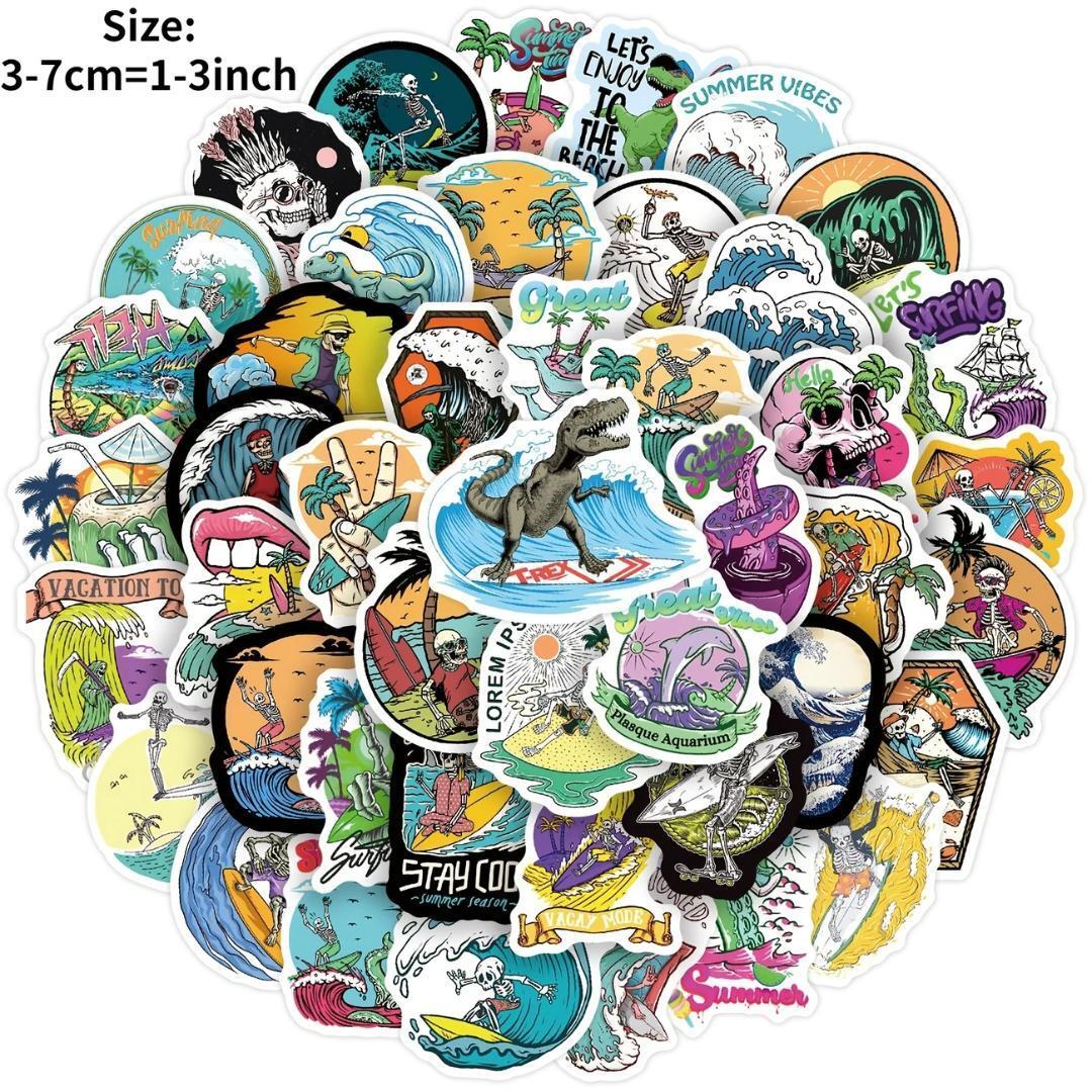 残 1 ☆ビーチサーフィンステッカー 50枚 ★スマホ・文具・楽器・サーフボード等に! C
