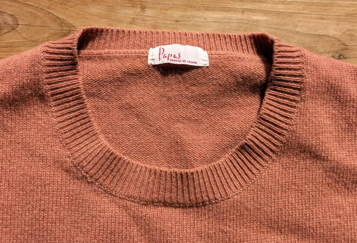 PAPAS パパス ウールニットセーター ローゲージ 100% WOOL ラム ロゴ刺繍 メンズ L/XL相当 美品 旧VAN JAC