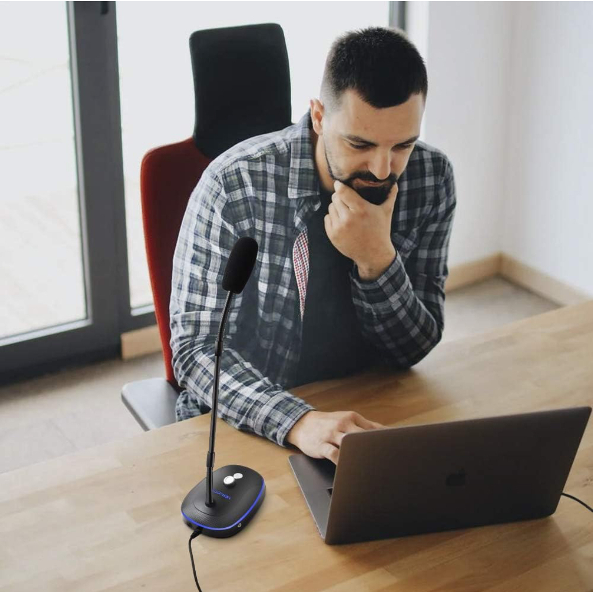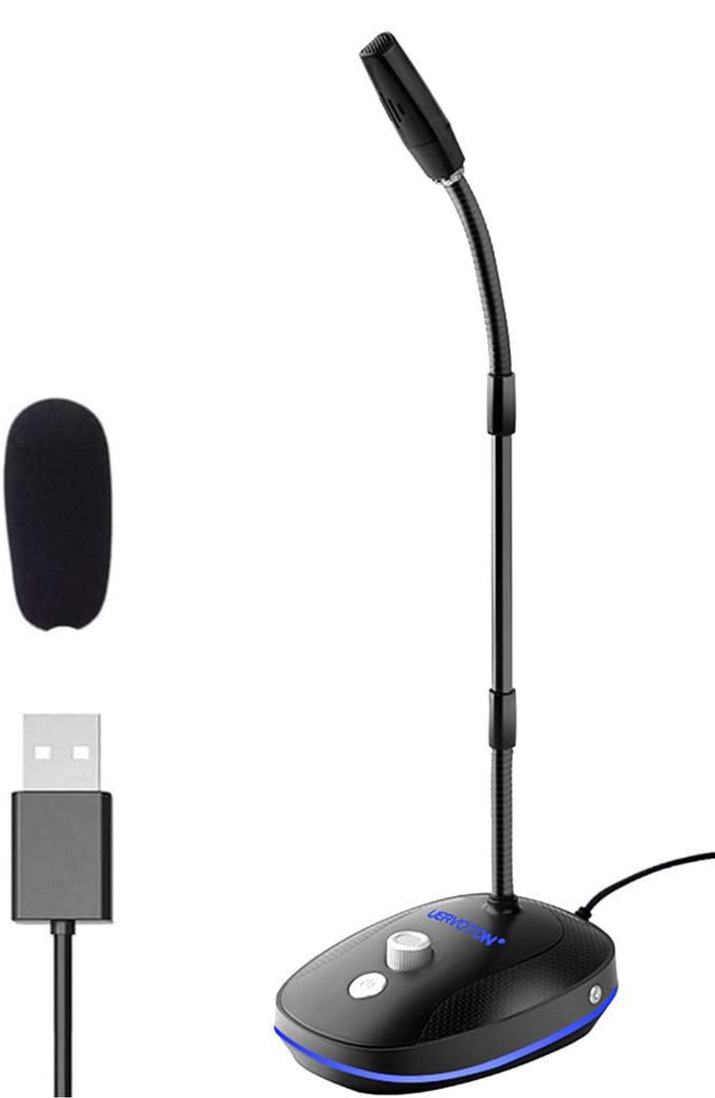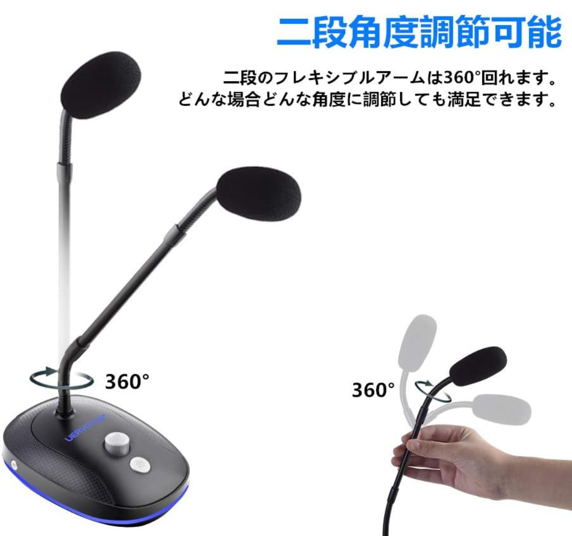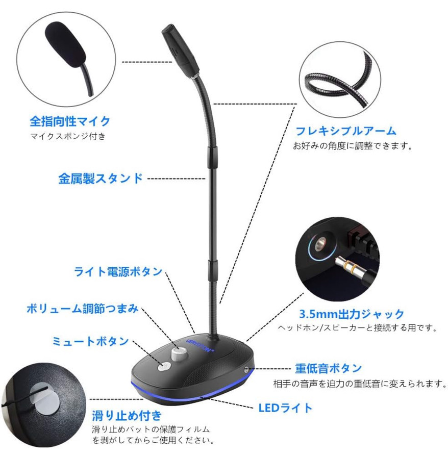 【中古美品】Uervoton PC用マイク USB LEDライト付き 高音質 全指向性 2段階調節可能 ミュート機能 Windows Mac PS4 日本語取扱説明書