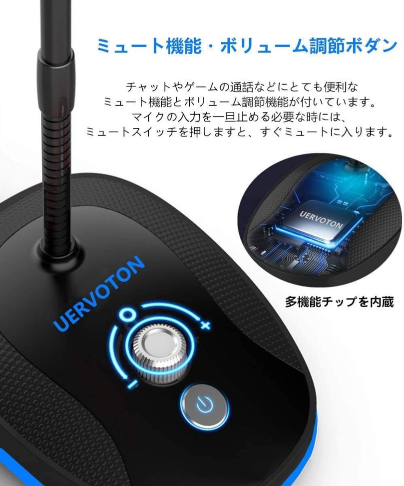 PCでの通話やゲーム実況、オンライン会議などに最適なUervotonのUSBマイクです。