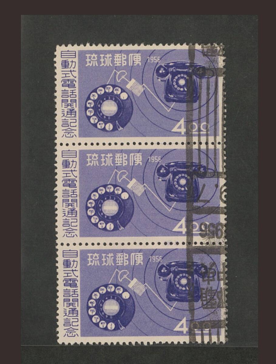 日本切手 琉球郵便 使用済 自動式電話開通 3ブロック ローラー印 那覇中央 1956.9.7 ヒンジ付き