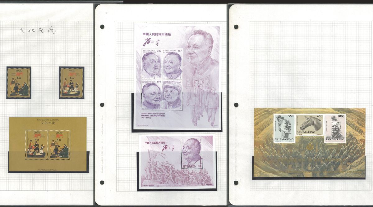 外国切手 マカオ、サンマリノ、ミクロネシア「中国」3リーフ(単片2+小型シート3) 未使用