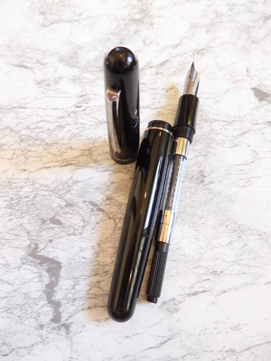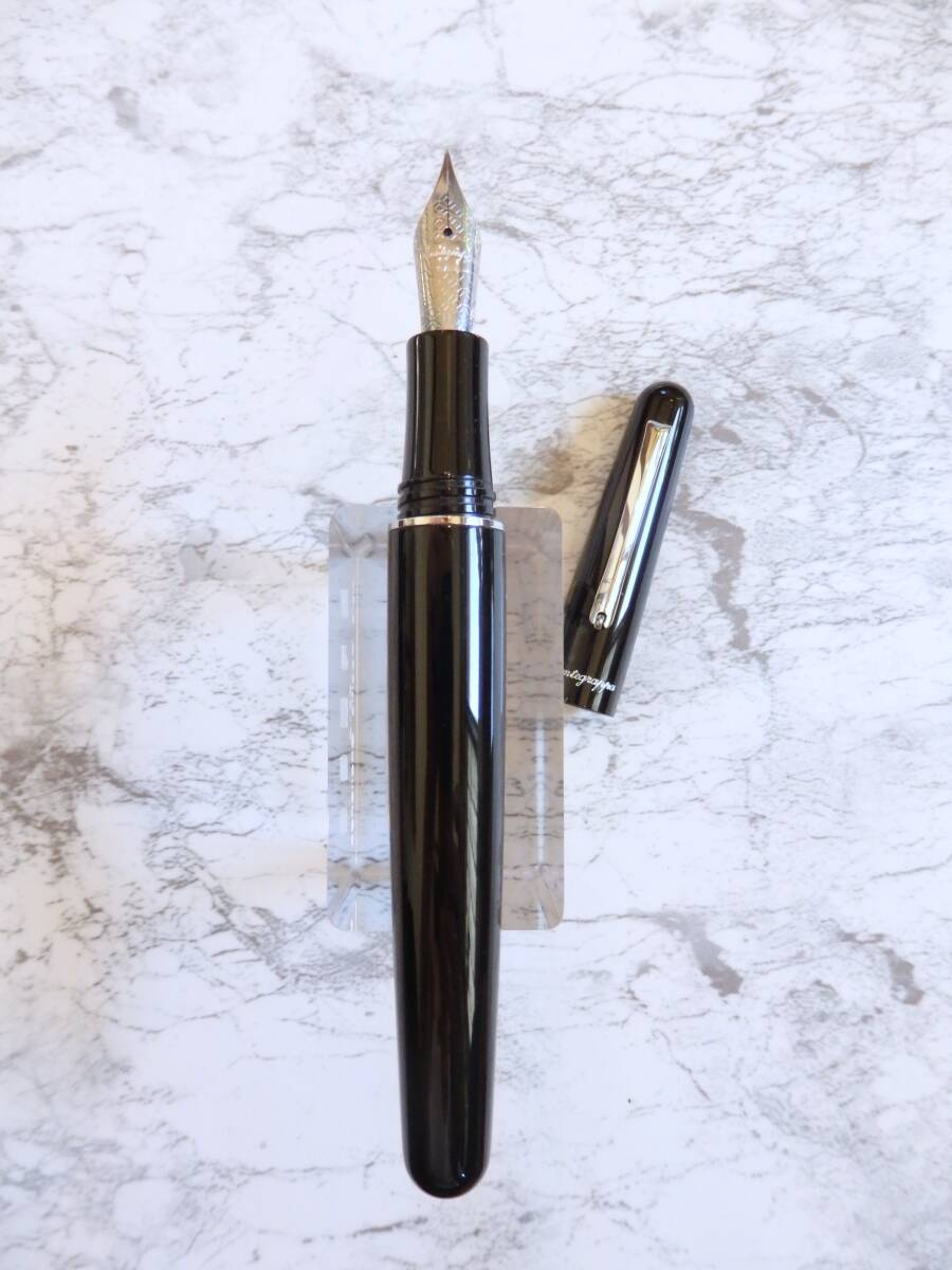 こちらの万年筆も、軸とキャップはいたらイタリアンプレシャスレジンという非常に魅力的な材料を使い万年筆の魅力度を高め、ペン先はハーモニックスティールニブを使い値段を抑えて、高級感と買い易さを両立させたものです。
