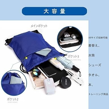 ジムサック リュック ナップサック プールバッグ 防水 軽量 折り畳み 多機能 シューズ収納 エコ 運動 旅行 アウトドア  新品未使用品になります。
