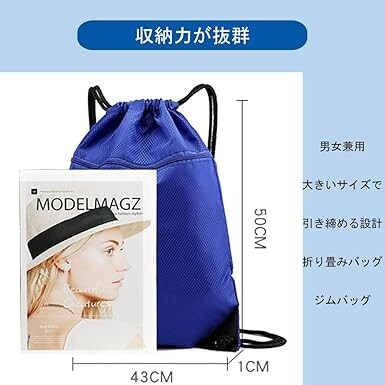 【使い勝手】通気性も良く、持ち運びも便利です。開口部が大きく開き、巾着状にキュッと絞れるので荷物をたっぷり入れられます。老若男女兼用します。