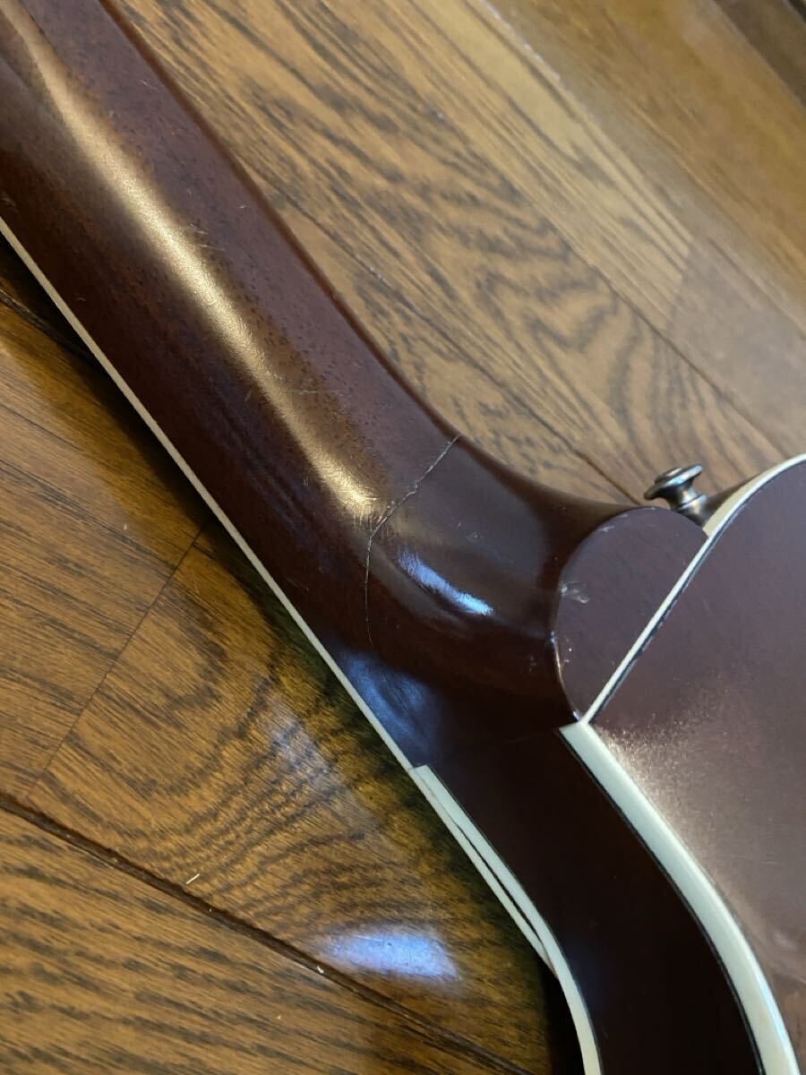ネックジョイント(ヒール付近)に塗装クラックがあります。