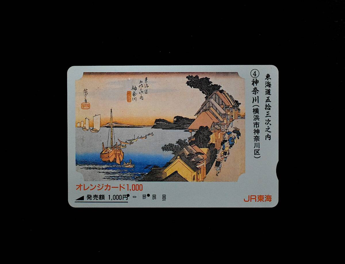 オレンジカード【使用済】JR東海:東海道五拾三次之内 4. 神奈川 (横浜市神奈川区)