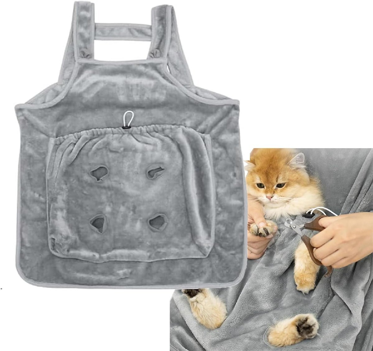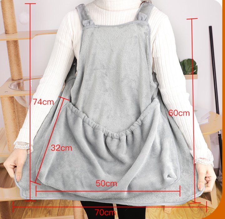 この抱っこ用エプロンなら、毛が付く心配もなく楽にペットを抱くことができます。
