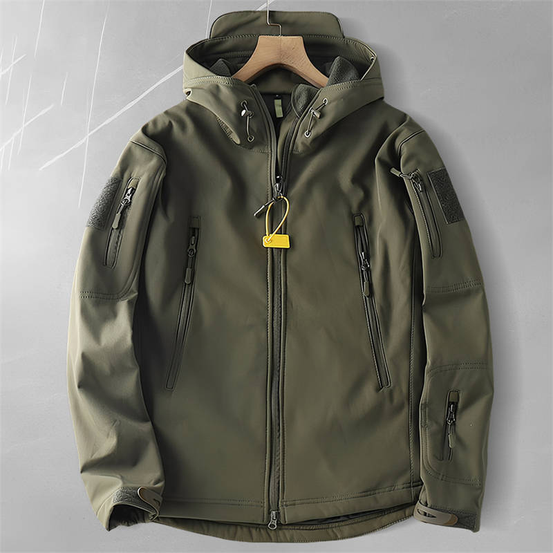 腕部分には便利なミニポケットを搭載し、鍵やカードなど小物収納に重宝。取り外し不可の一体型フードは機能性と防護性を兼ね備え、アウトドアシーンや日常使いでも安心の一着です。